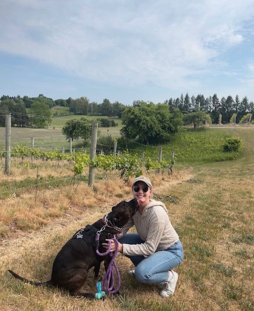 “I adopted Kaya from the Humane Society while I was going to college. She was there with her two brothers and a sister. While her siblings were very social and active, Kaya was scared and hiding in the corner. I wanted to take her home and make her feel safe. She also was the only one of her litter with distinct brindle markings, so I knew she was special.”