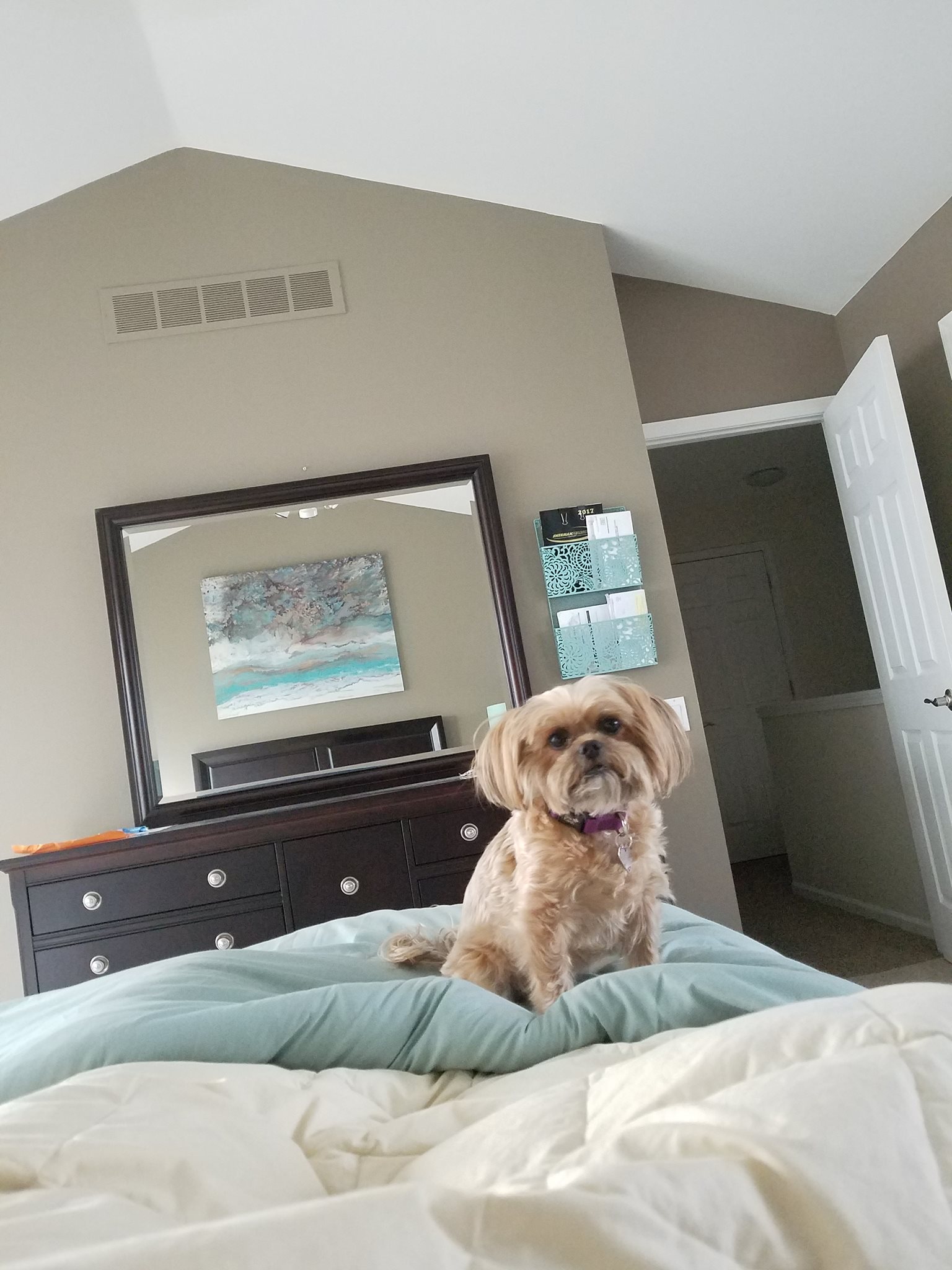 “Penelope is my son, Bob’s dog, which makes her my grandpup. I used to take her only on weekends because I had a fenced-in yard and she could run freely. A new dog came into her home, much bigger and playful. Penelope was 11 years old by then, and just didn't like being bothered by the big puppy and was jealous and acting out. So she came to live with Grandma and Grandpa so everyone could be happy!”