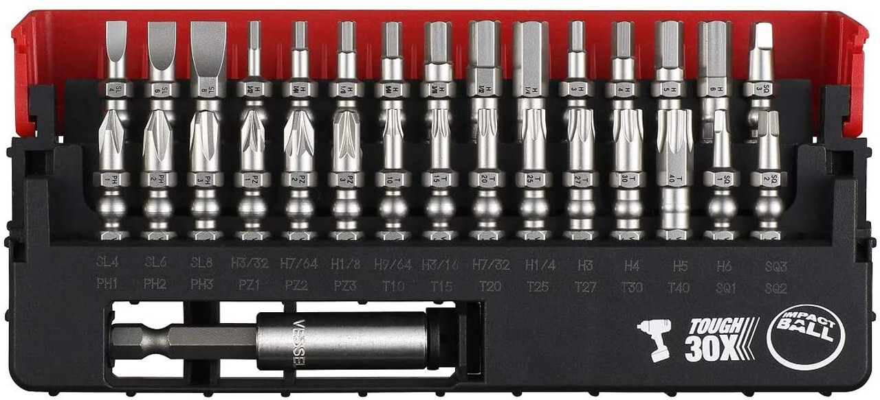 This 30-piece set is a game-changer for professionals who need versatility and durability in their fastening tools. Featuring impact ball torsion bits, this set is engineered to absorb high torque while minimizing stress on both the bit and fastener.