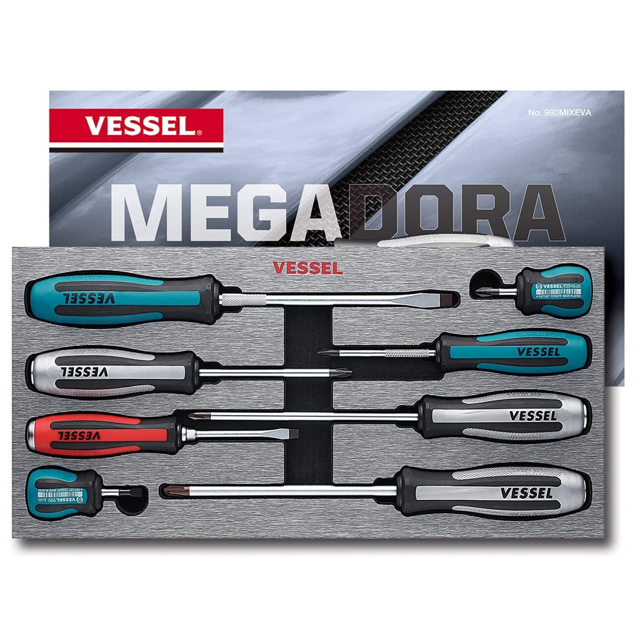 3. Vessel 980MIXEVA Megadora Impacta Assorted Screwdriver 8-Piece Set